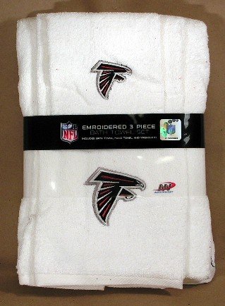 Atlanta Falcons 3 Piece White Embroidered Bath Towel Set Feature