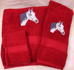 Embroidered White Horse Head Red Bath Towel Set Feature
