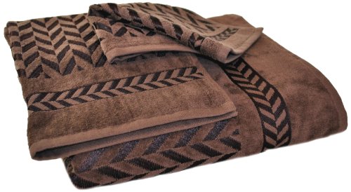 Austin Horn Classics Chevron Jacquard 3-Piece Towel Set, Brown Feature