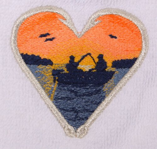 Bath Towel Set with Embroidered Fish Hook Heart Feature