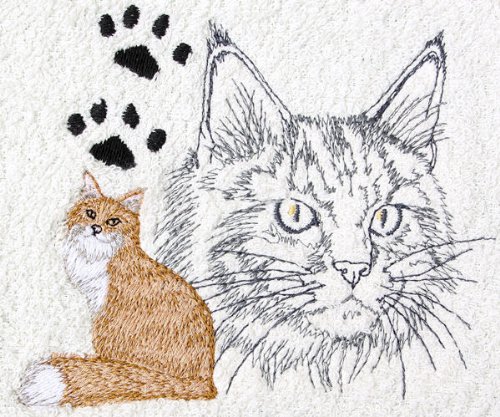Bath Towel Set with Embroidered Maine Coon Cat Feature