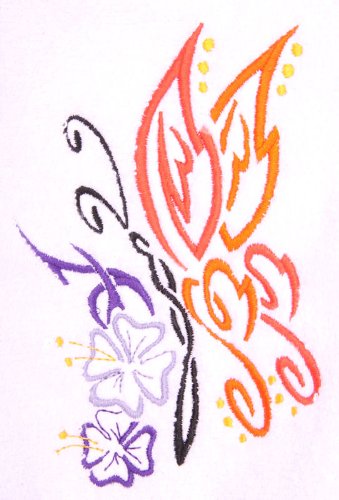 Bath Towel Set with Embroidered Tribal Butterfly Feature