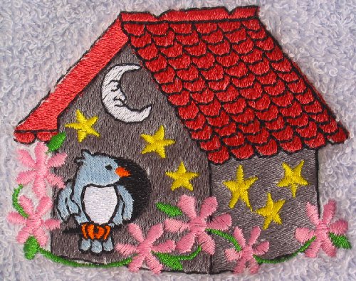 Bath Towel Set with Embroidered Bluebird with Birdhouse Feature