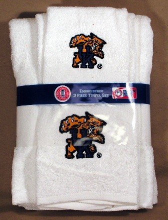 Kentucky Wildcats 3 Piece White Embroidered Bath Towel Set Feature