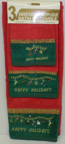 RED AND GREEN HAPPY HOLIDAYS AND CANDY CANES CHRISTMAS 3 PIECE BATH TOWEL, HAND & WASH CLOTH SET Feature