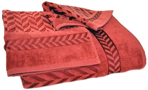 Austin Horn Classics Chevron Jacquard 3-Piece Towel Set, Crimson Red Feature