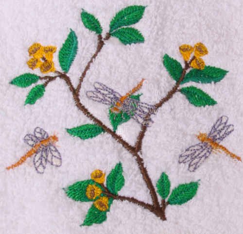 Bath Towel Set with Embroidered Elegant Dragonfly Feature