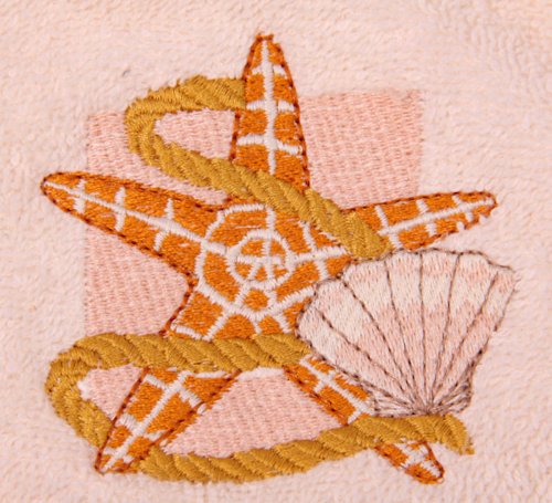 Bath Towel Set with Embroidered Star Fish and Seashell Feature