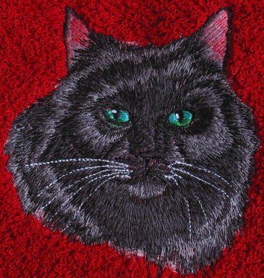 Bath Towel Set with Embroidered Black Long Hair Cat Feature