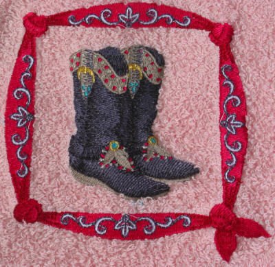 Bath Towel Set with Embroidered Cowboy Boots and Bandana Feature