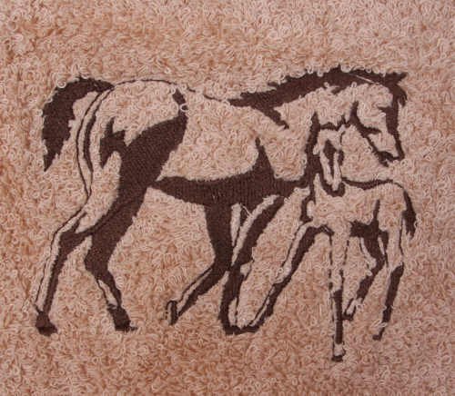 Bath Towel Set with Embroidered Mare and Foal Horse Feature