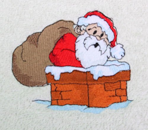 Bath Towel Set with Embroidered Santa in the Chimney Feature