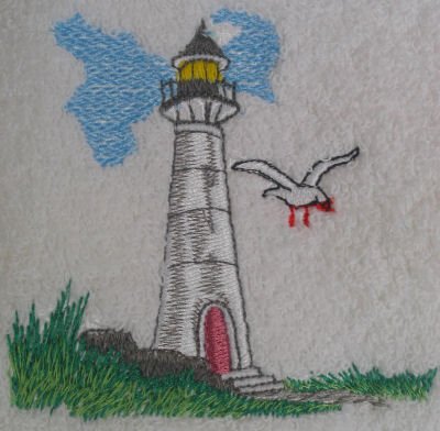 Bath Towel Set with Embroidered White Lighthouse with Seagull Feature