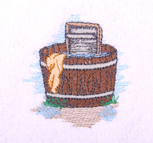 Bath Towel Set with Embroidered Wooden Wash Tub Feature