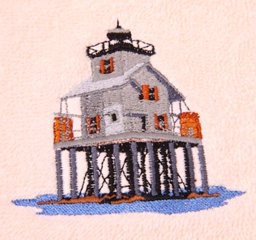 Bath Towel Set with Embroidered Timbalier Lighthouse Feature