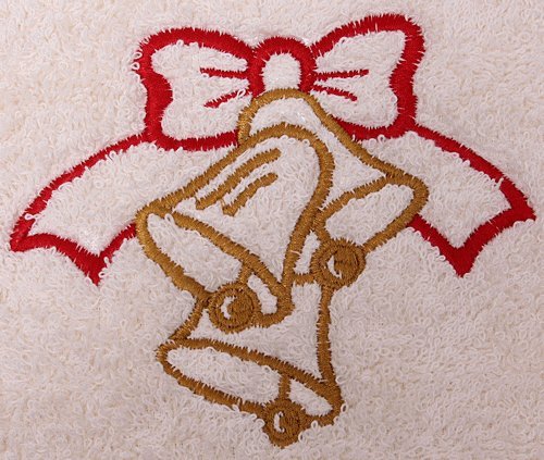 Bath Towel Set with Embroidered Christams Bow and Bells Feature