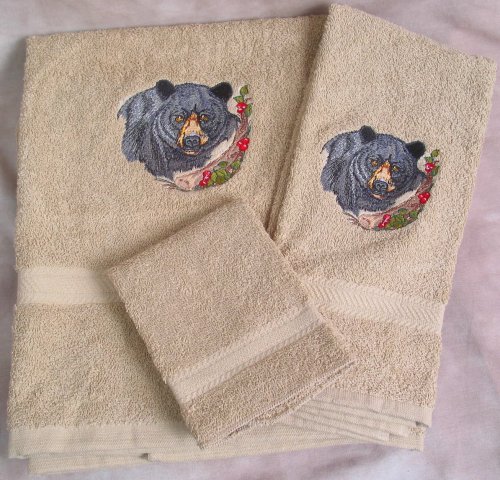 Embroidered Black Bear on Beige Wash Hand Bath Towel Set Feature