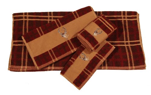 HiEnd Accents 3-Piece Deer Towel Set, Plaid Feature