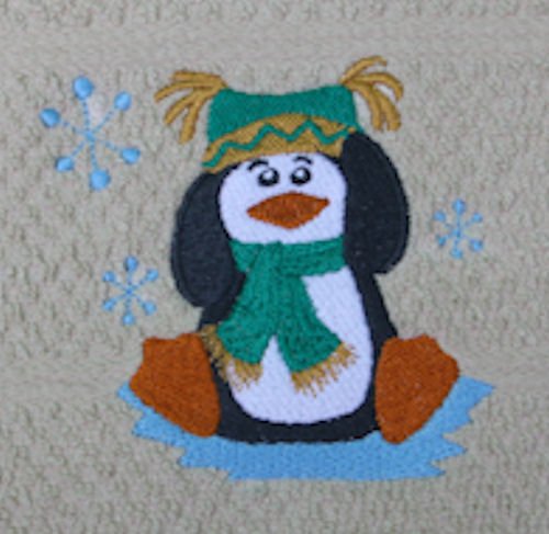 Bath Towel Set with Embroidered Pengiun with Snowflakes Feature