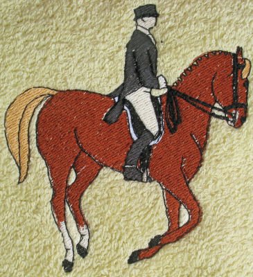 Bath Towel Set with Embroidered Dressage Horse and Rider Feature