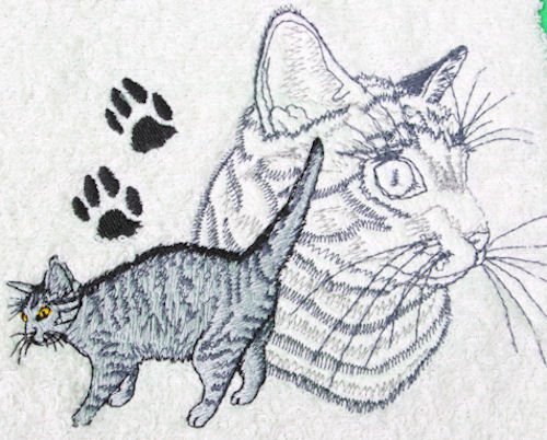 Bath Towel Set with Embroidered Shorthair Gray Tabby Cat Feature