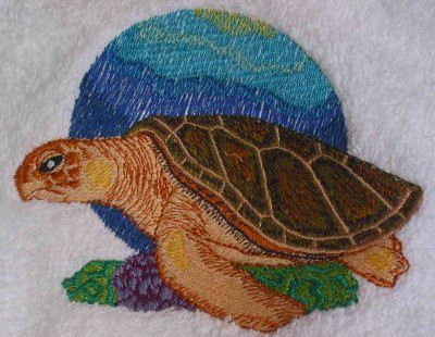 Bath Towel Set with Embroidered Sea Turtle _ White Feature