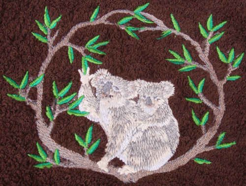 Bath Towel Set with Embroidered Two Koala Bears Feature