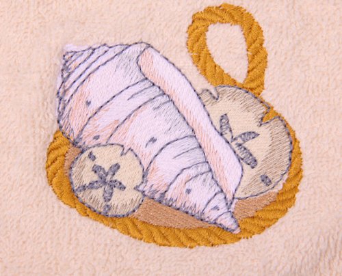 Bath Towel Set with Embroidered Seashell and Sand Dollars Feature