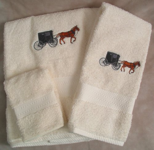 Embroidered Amish Horse & Buggy on a Cream Bath Towel Set
