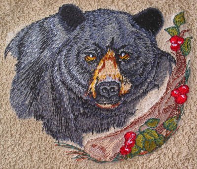 Bath Towel Set with Embroidered Black Bear Feature
