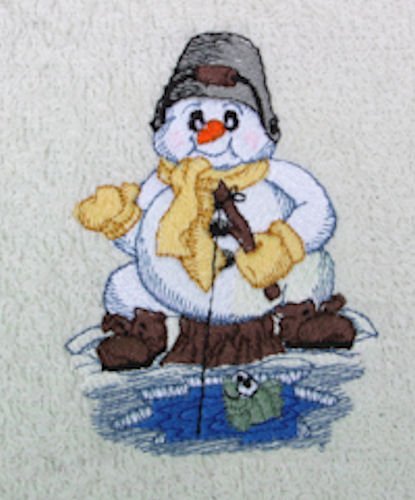 Bath Towel Set with Embroidered Ice Fishing Snowman Feature