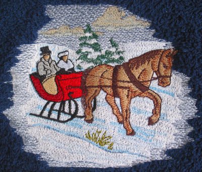 Bath Towel Set with Embroidered Single Horse and Sleigh Feature