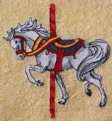 Bath Towel Set with Embroidered Carousel Horse Feature