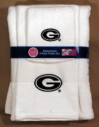 Georgia Bulldogs 3 Piece Embroidered White Bath Towel Gift Set Feature