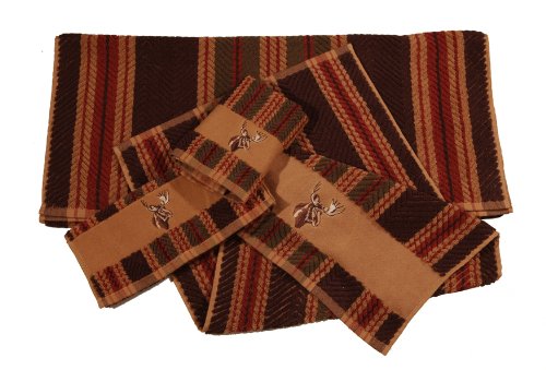 HiEnd Accents 3-Piece Moose Towel Set, Stripes Feature
