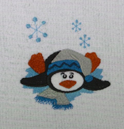 Bath Towel Set with Embroidered Pengiun Falling on Ice Feature